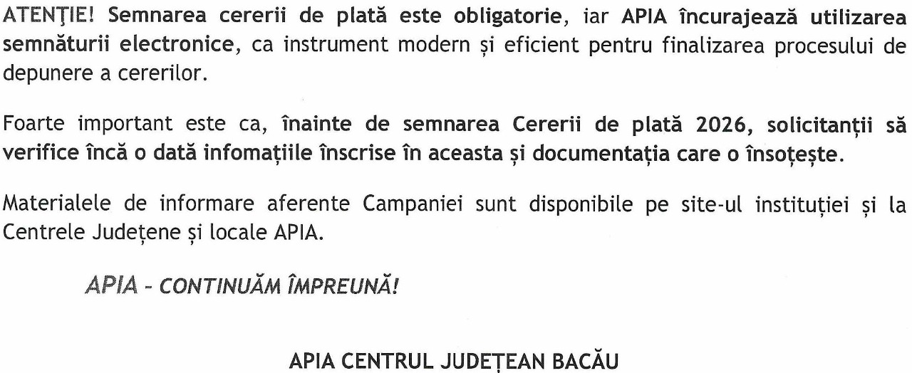 APIA primeste CERERI de plată pentru CAMPANIA 2026