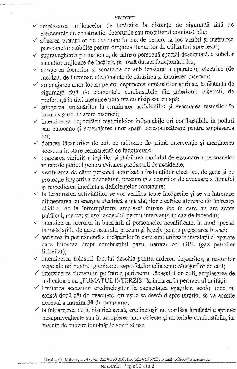 Vă informăm cu următoarele măsuri pentru prevenirea incendiilor pe timpul, premergător și după finalizarea slujbelor: